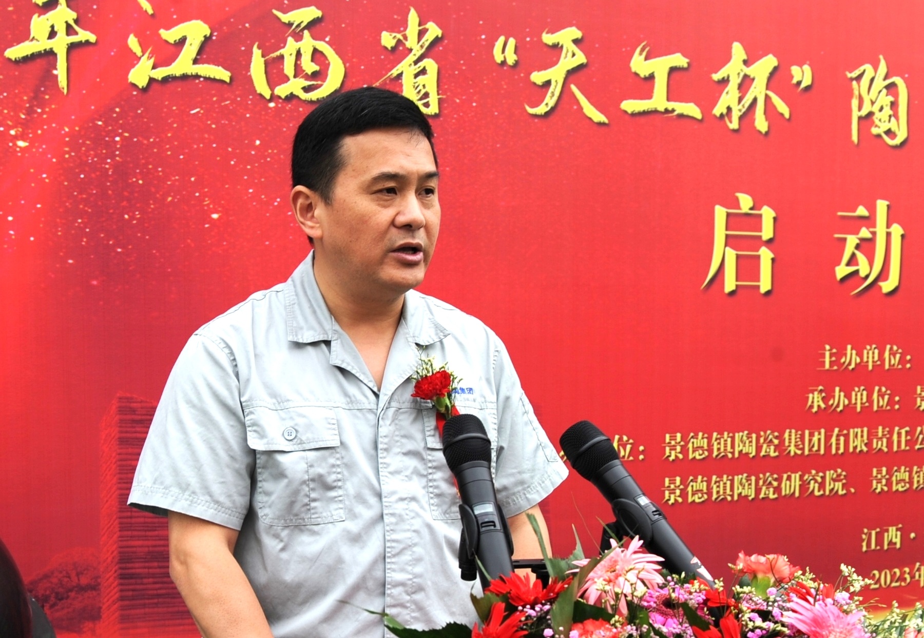 在啟動(dòng)儀式上,景陶集團(tuán)黨委書記、董事長(zhǎng)鄧景揚(yáng)代表大賽的協(xié)辦方向光臨啟動(dòng)儀式的各位來(lái)賓表示歡迎和感謝!鄧景揚(yáng)在致辭中表示,帶著習(xí)總書記的囑托,我們迎來(lái)了“2023年江西省天工杯陶瓷行業(yè)職工職業(yè)技能競(jìng)賽”。習(xí)總書記的殷殷囑托,對(duì)于陶瓷產(chǎn)業(yè)工人來(lái)說(shuō),是鼓舞,是關(guān)切,更是振奮人心!建設(shè)一支高素質(zhì)的陶瓷產(chǎn)業(yè)工人隊(duì)伍,展示我們陶瓷行業(yè)職工職業(yè)技術(shù)水平,是我們企業(yè)高質(zhì)量發(fā)展的基石,更是弘揚(yáng)中國(guó)傳統(tǒng)陶瓷文化,推進(jìn)景德鎮(zhèn)國(guó)家陶瓷文化傳承創(chuàng)新試驗(yàn)區(qū)建設(shè)的一支強(qiáng)化劑。我們要時(shí)刻以習(xí)近平總書記的一句話勉勵(lì)自己:“一輩子做一件事,祖祖輩輩干一件事,不是簡(jiǎn)單的事。老祖宗傳下來(lái)的優(yōu)秀傳統(tǒng)文化,我們要繼續(xù)攥在手里,與時(shí)俱進(jìn),讓它發(fā)揚(yáng)光大?!鼻曛拼陕罚粝碌牟粌H是天青色的記憶,更凝聚著中華文明的古與今。