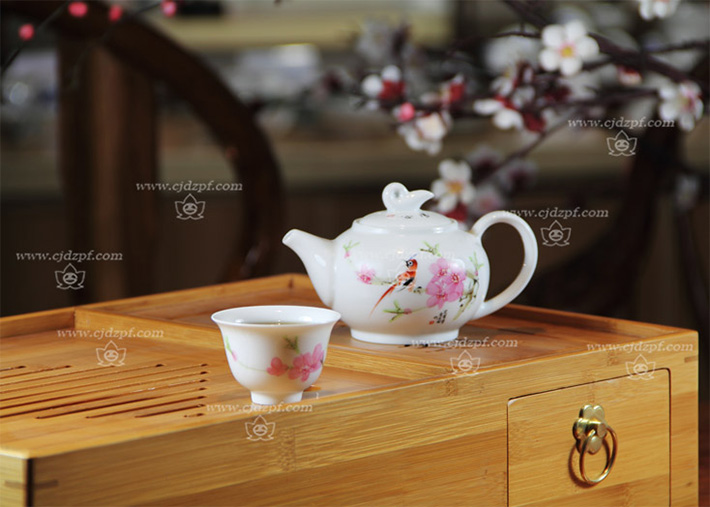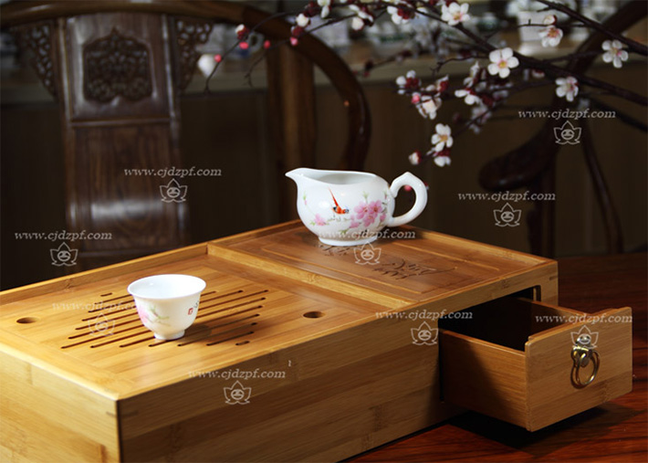 手繪功夫茶具(竹質(zhì)茶海)水點桃花