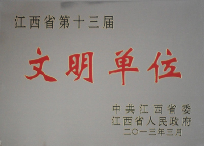 近日,省委、省政府下發(fā)通報(bào),表彰江西省第十三屆“文明單位”。公司榜上有名。這是公司連續(xù)三屆榮獲省級“文明單位”殊榮。