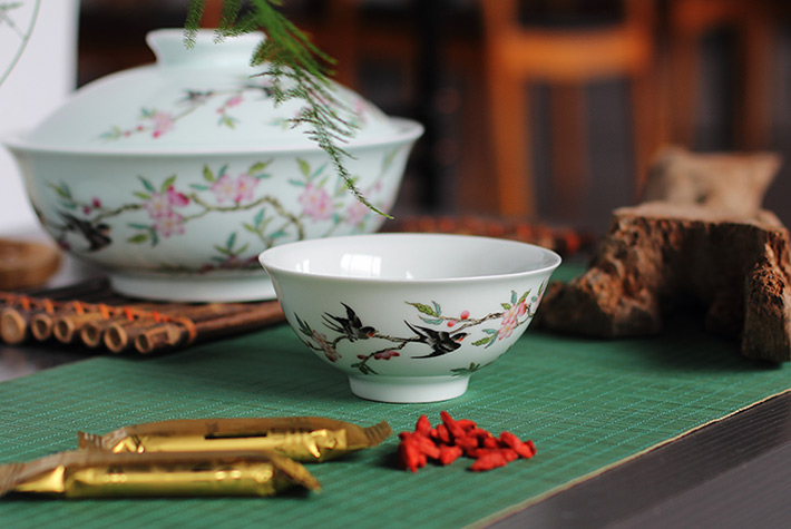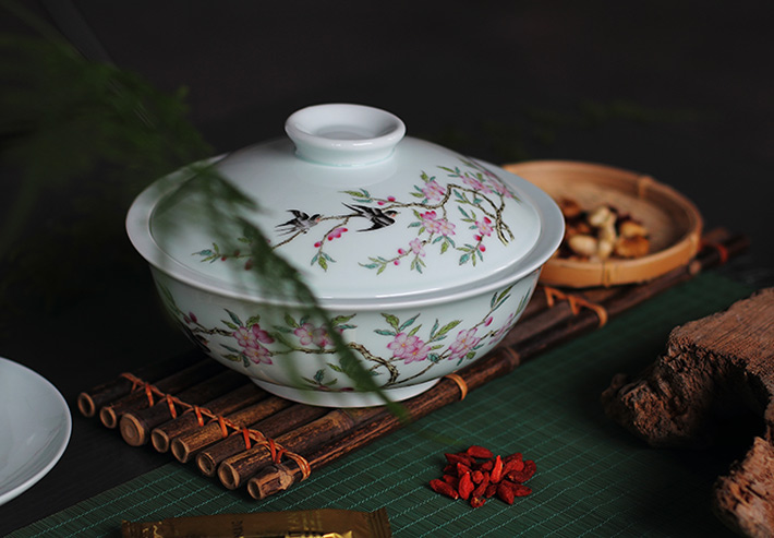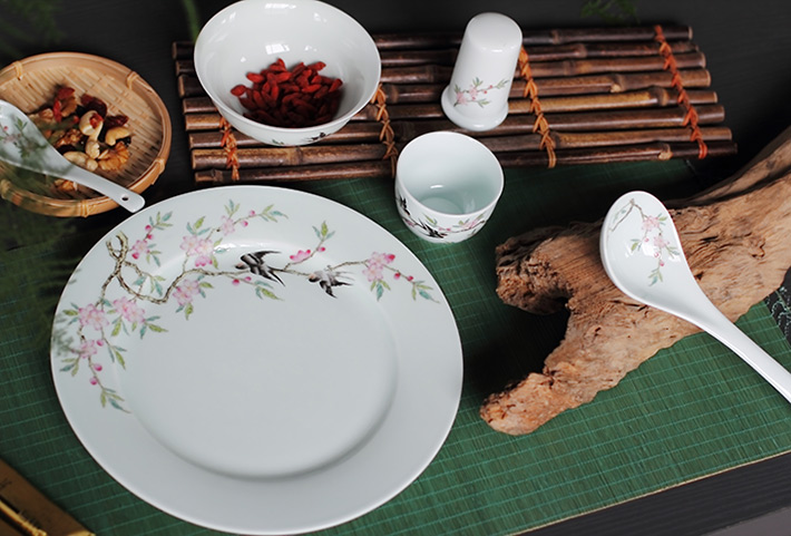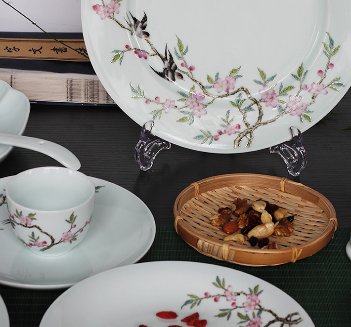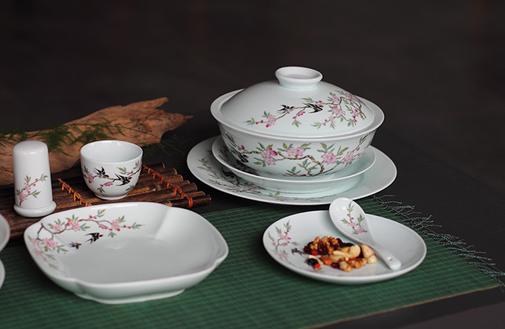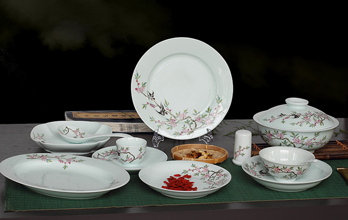 36頭青釉中餐具--燕子桃花