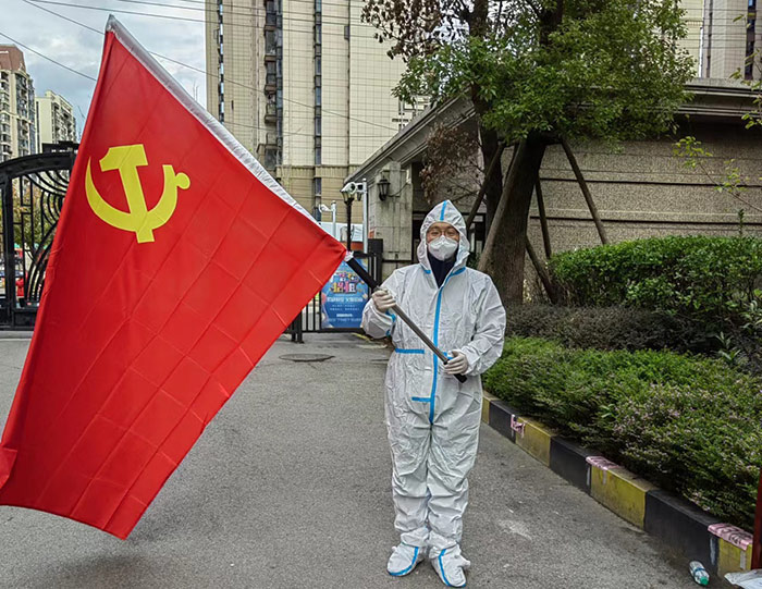 組織委員邵建華,自疫情發(fā)生以來,每天都值守在疫情一線,天沒亮他就到核酸檢測崗去維持秩序,核酸檢測完他又去卡口執(zhí)勤。不僅如此,因小區(qū)封控,環(huán)衛(wèi)車進(jìn)不來,他每天用自己的雙手將居民的生活垃圾一桶一桶的運(yùn)出,不怕臟,不怕累,只為還原小區(qū)一個(gè)干凈衛(wèi)生整潔的環(huán)境。